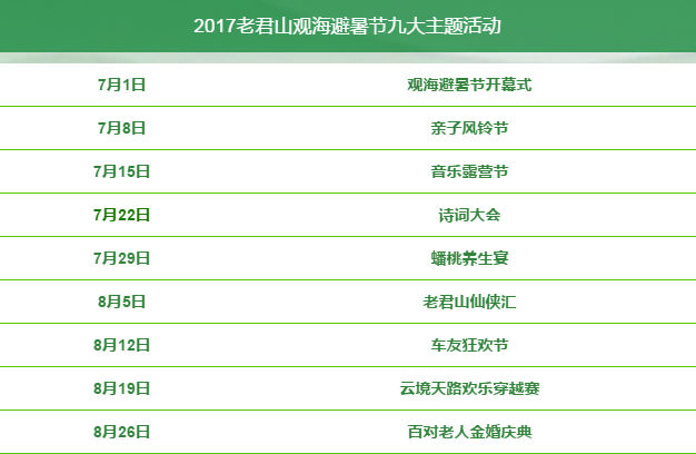 看到這么多精彩是不是后悔沒來呢?沒關(guān)系,2017老君山觀海避暑節(jié)還有更多精彩值得期待!