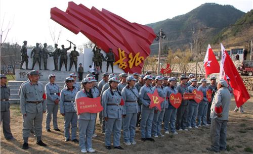 銘記歷史,緬懷先烈。在叫河鎮(zhèn)紅二十五軍長征文化園內(nèi),重走長征路體驗者們正在進行長征精神游。通過整頓隊列、過草地、過鐵索橋、爬山、聆聽革命故事等深度體驗革命時期的那段刻骨銘心的紅色記憶。戰(zhàn)火紛飛的年代已經(jīng)遠去,但提起對紅二十五軍的記憶,大家依然能感受到紅軍當年的精神,這抹從來不曾遠去的“紅軍紅”鼓舞著后代們堅定理想信念,為美好生活而努力拼搏。