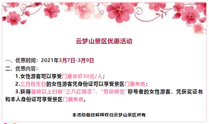 一年一度的女神節(jié)即將來(lái)臨,在這個(gè)專屬于女神們的節(jié)日里,踏青、賞花、游玩才是正確的打開(kāi)方式,云夢(mèng)山景區(qū)已為您精心備好最美麗最健康的女神節(jié)禮物——讓你在最美的時(shí)光里遇見(jiàn)最美的自己。