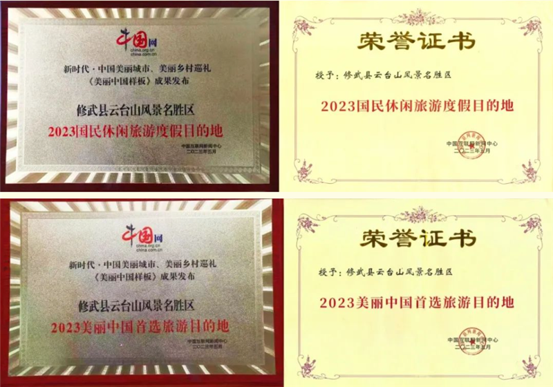 近日,在中國互聯(lián)網(wǎng)新聞中心(中國網(wǎng))主辦的第三屆“新時(shí)代·中國美麗城市、美麗鄉(xiāng)村巡禮”成果發(fā)布儀式上,云臺(tái)山榮獲兩項(xiàng)榮譽(yù)稱號(hào):2023國民休閑旅游度假目的地、2023美麗中國首選旅游目的地。