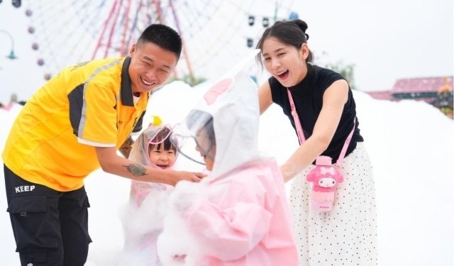 活動(dòng)當(dāng)天,平日里爭(zhēng)分奪秒的騎手為家人放慢了腳步,他們有的被南極企鵝館的非遺冰雕深深吸引,對(duì)著世界上體型最大的帝企鵝直夸可愛(ài);有的在極地動(dòng)物館,帶著孩子一起和北極熊、白鯨等海洋極地動(dòng)物打招呼;有的在奇妙海洋館的無(wú)邊際展窗前,牽著妻子的手享受海底世界的浪漫約會(huì);還有全家總動(dòng)員和演員一起打水仗、玩泡沫,打卡中原最高的“鄭州之眼”摩天輪,嘗試怪獸海盜船等各種游樂(lè)設(shè)備。往日焦急的趕路神情化為最燦爛的笑臉,成了海洋世界最美的風(fēng)景線。