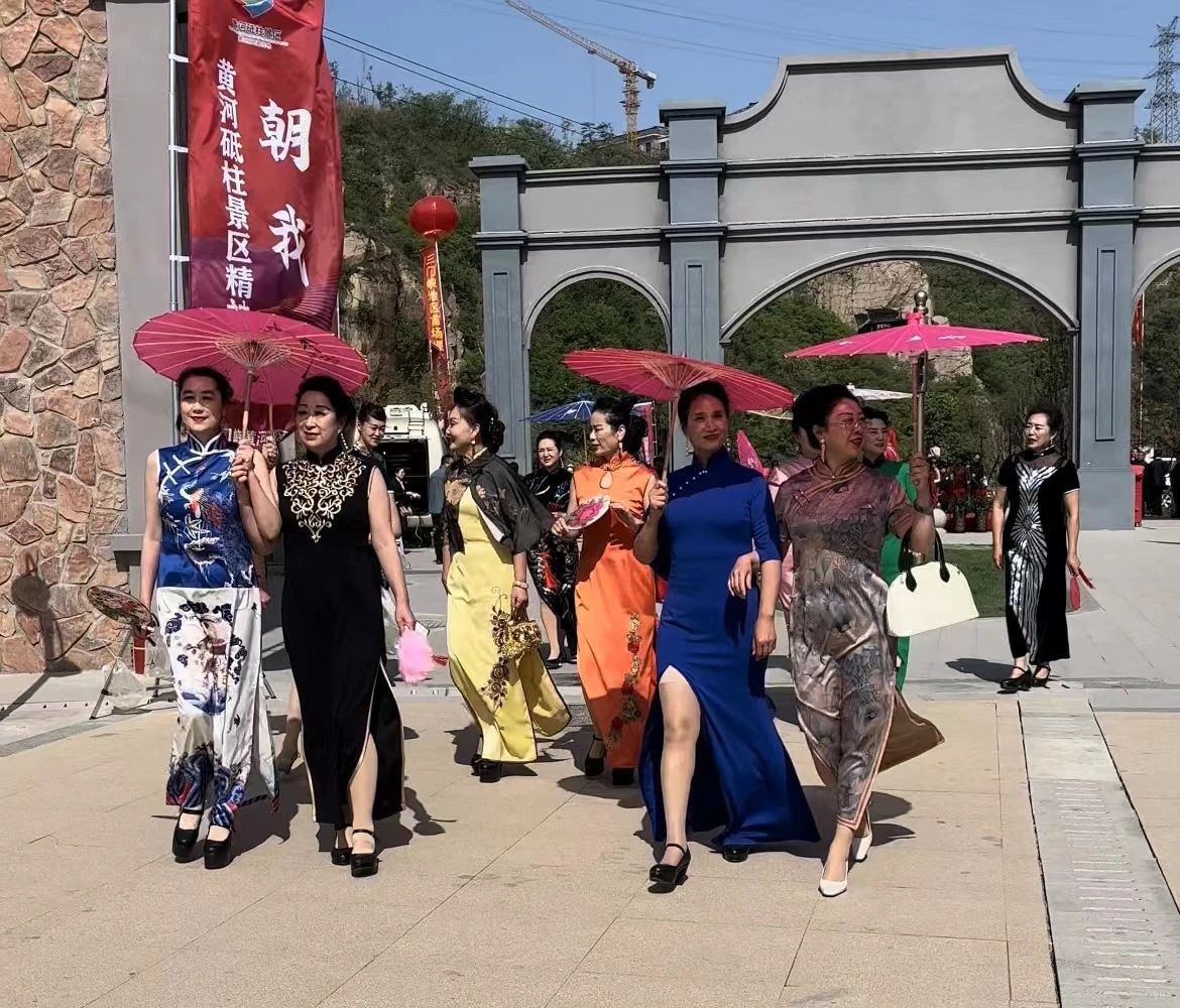 ▲人們身穿旗袍在角古東小鎮(zhèn)游玩 三門峽日報記者吳若雨 攝