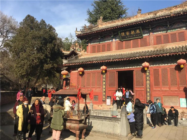 游客到風穴寺拜佛,祈禱疫情早日結束,新的一年風調雨順。