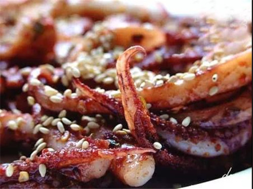鐵板魷魚,聽著魷魚在燒燙的鐵板上滋滋響聲,不斷飄來的香味,口水一直流個(gè)不停.....