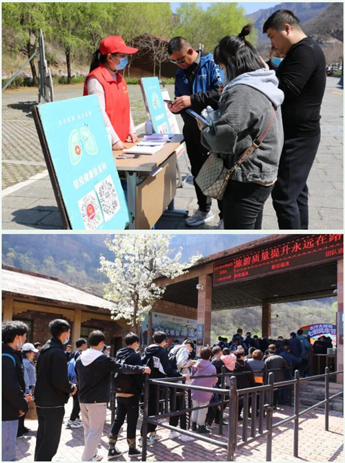 各個(gè)服務(wù)點(diǎn)雖然人頭攢動(dòng),但卻秩序井然。太行大峽谷風(fēng)景區(qū)嚴(yán)格執(zhí)行新冠疫情防控措施等有關(guān)規(guī)定,落實(shí)“測(cè)溫+亮綠碼+空間消毒”等防疫措施,加強(qiáng)對(duì)工作人員和游客的健康監(jiān)測(cè)和管理,鼓勵(lì)“無(wú)接觸”服務(wù),強(qiáng)化景區(qū)游覽管理,切實(shí)保障好游客的健康安全,平穩(wěn)有序度過(guò)清明假期。