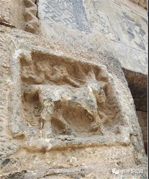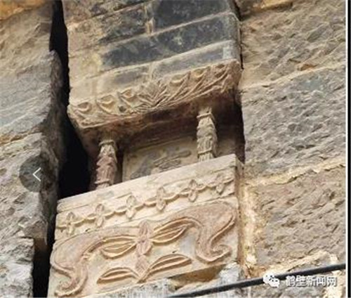 院門處墻壁兩側刻有牛羊圖案,寓意“牛羊滿圈”;門額上刻有富貴牡丹、送子蓮花、麒麟、麋鹿、耕牛等。