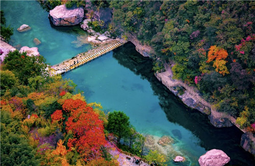 這個(gè)秋天,相約寶泉,一起望秋水、賞秋景,乘著小船蕩漾在翡翠海上,去感受寶泉秘境的恬靜和悠閑,翡翠海清澈碧透,秋水長(zhǎng)天共一色!