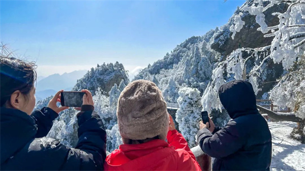 雪讓老君山美成了一首詩,幻化成了一片銀白色的童話世界,游客們也都成為了童話世界的主角…