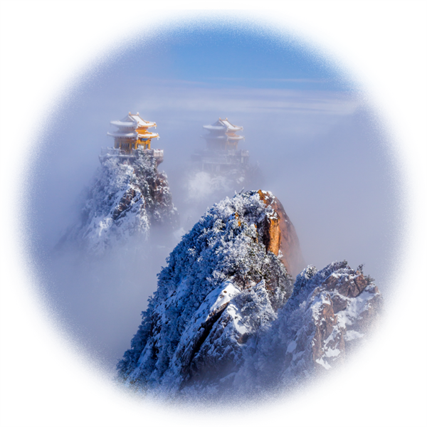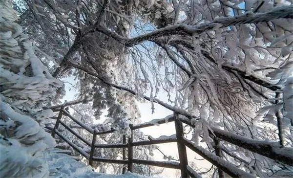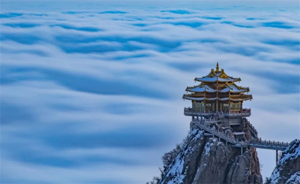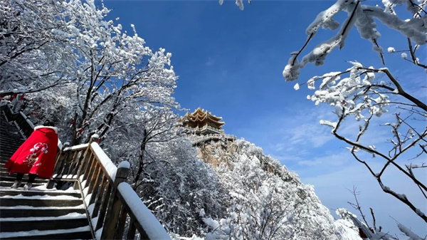 此時在皚皚白雪的映襯下,增添了一份素雅,更有了“云上仙宮”的神秘意境。