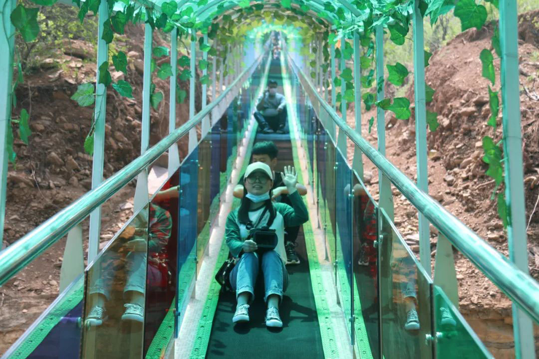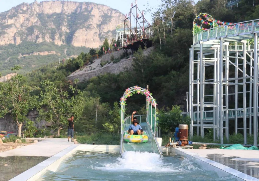 在國家傳統(tǒng)村落、全國首批鄉(xiāng)村旅游重點村、網(wǎng)紅旅游勝地趙莊,剛剛開業(yè)的“高山漂流”項目吸粉無數(shù),眾多參與體驗的游客直呼“刺激”,更是給炎炎夏日帶來了絲絲清涼。全長800米、落差高100余米的“高山漂流”,是該村繼晃晃橋、懸崖秋千、水上騎行、空中漫步、七彩滑道、太空飛船等特色項目外重磅推出的又一大型網(wǎng)紅娛樂項目,眾多游客紛至沓來,競相體驗。