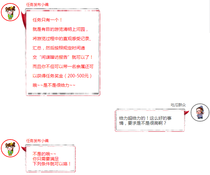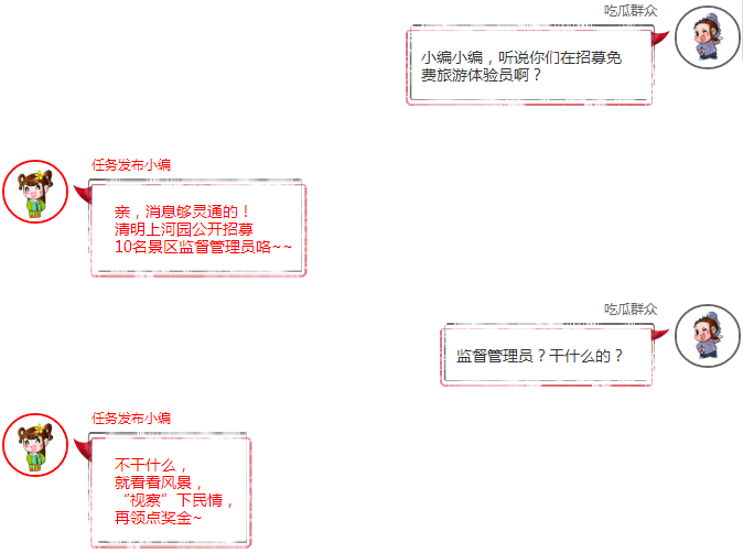 清明上河園招募10名景區(qū)監(jiān)督管理員?免費(fèi)游園?還有獎(jiǎng)金?什么情況? 是這樣滴~~ 清明上河園是開(kāi)封市的一座大型歷史文化主題公園。曾先后獲得中國(guó)旅游知名品牌、國(guó)家文化產(chǎn)業(yè)基地、國(guó)家AAAAA級(jí)景區(qū)、全國(guó)旅游先進(jìn)集體等多項(xiàng)殊榮。為進(jìn)一步提升景區(qū)精品化水平,提高游客游園深度體驗(yàn)的舒適度、幸福感;為全視角、多方位收集各方人士對(duì)景區(qū)發(fā)展的建議與意見(jiàn)。所以從即日起,清明上河園公開(kāi)招募10名景區(qū)監(jiān)督管理員咯~~
