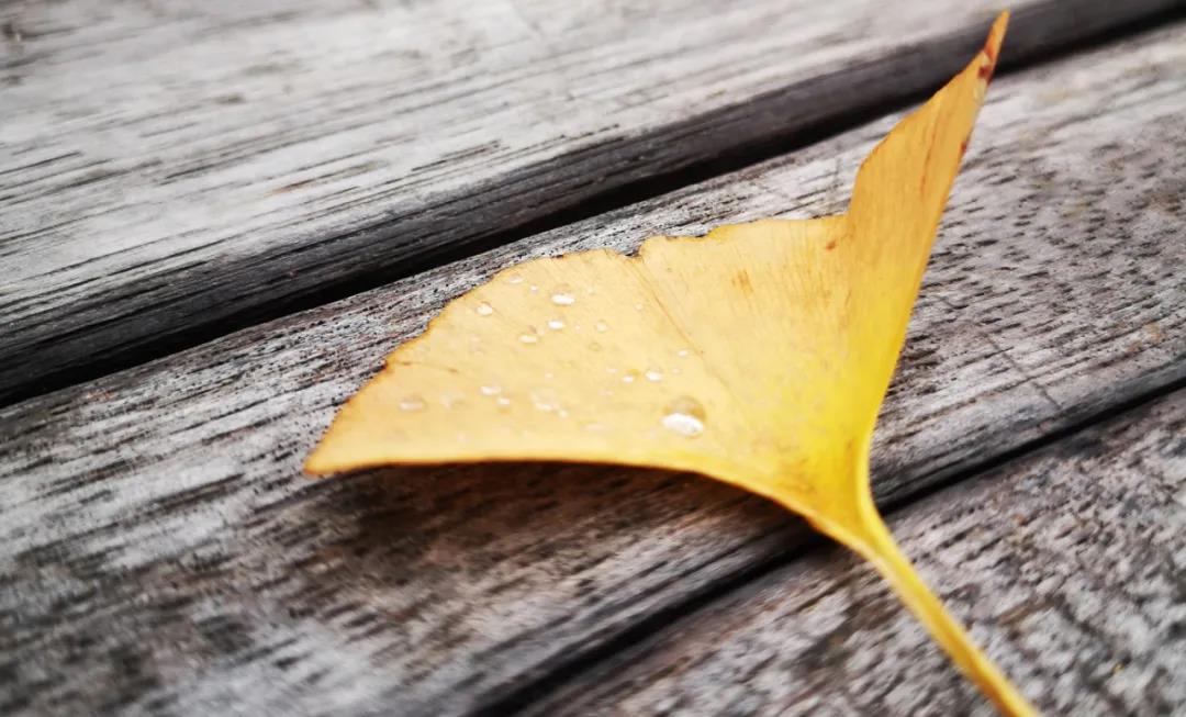順手撿起,只見葉上有著細細的紋絡(luò),那是春、夏給它留下的吻痕嗎?輕輕捏著那細長的扇柄,那顏色亮得耀眼,這淡雅別致的嫩黃及深黃,卻是最動我心,這才是秋的顏色!