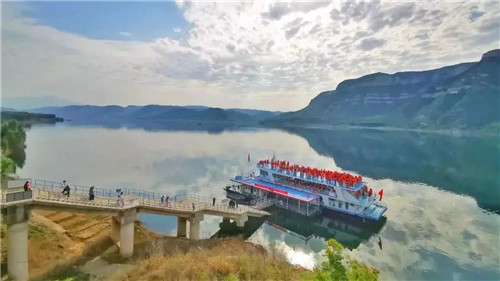 黃河三峽三層游輪,一個小時游線,沿途高峽澄湖,群峰競秀,河道收放開合,九曲十折,港灣幽深秀麗,交叉遍布。