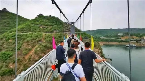 跨河玻璃吊橋,矗立兩個山頂之上,截斷漫山云雨,超長距離感受試膽通道。