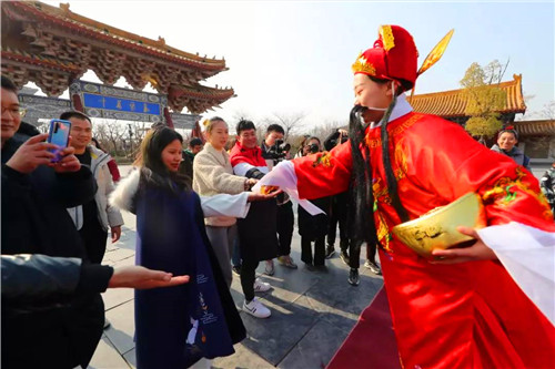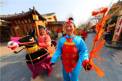 為了讓大家在清明上河園度過(guò)一個(gè)熱鬧的元旦佳節(jié),感受一下新年氛圍,除了每天的演出照常進(jìn)行外,我們特別邀請(qǐng)了民俗隊(duì)伍與游客們一起歡度元旦。以往只在春節(jié)期間才有的舞龍、舞獅、財(cái)神巡游、肘閣、跑驢、老背少、蹦桿轎、抬老四等民俗表演,他們都來(lái)了。