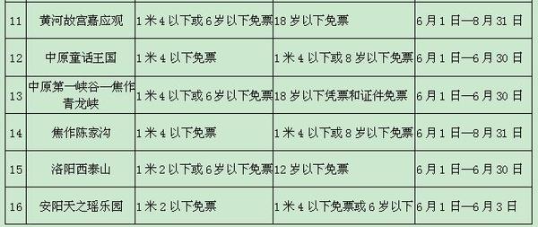 據(jù)悉,這16家景區(qū)分別是焦作云臺山、鄭州市動物園、三門峽神龍峽景區(qū)、新鄉(xiāng)八里溝、新鄉(xiāng)九蓮山、新鄉(xiāng)天界山、焦作青龍峽、洛陽西泰山、安陽天之瑤樂園、中原童話王國、中原影視城、黃河故宮嘉應(yīng)觀、洛陽伊河漂流、鶴壁扈家大院、大宋名相園、焦作陳家溝。