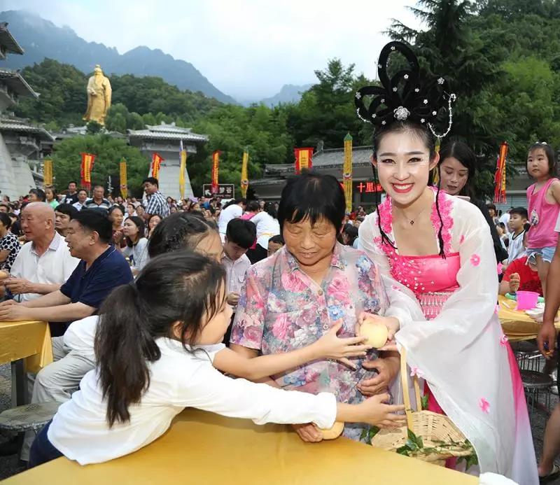 嫦娥仙子攜七仙女,提著籃子來到游客中間,獻(xiàn)上鮮甜多汁的壽桃~