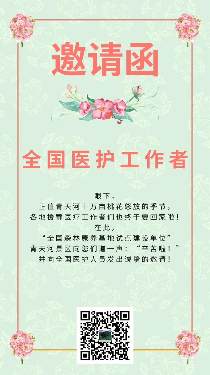 根據(jù)中央應(yīng)對(duì)新冠肺炎疫情工作領(lǐng)導(dǎo)小組會(huì)議精神,3月17日起,全國(guó)援鄂醫(yī)療隊(duì)有序撤離!為致敬奮斗在抗“疫”一線的醫(yī)務(wù)工作者,青天河誠(chéng)摯發(fā)出邀請(qǐng),邀請(qǐng)全國(guó)醫(yī)護(hù)工作者免費(fèi)暢游景區(qū)。