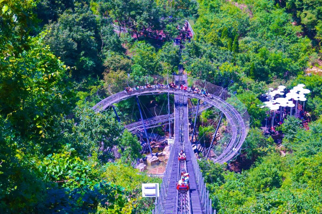 手動(dòng)控速,管軌式滑道,超高安全性,置身山野叢林間,盤旋而下,視覺與刺激的雙重體驗(yàn)。