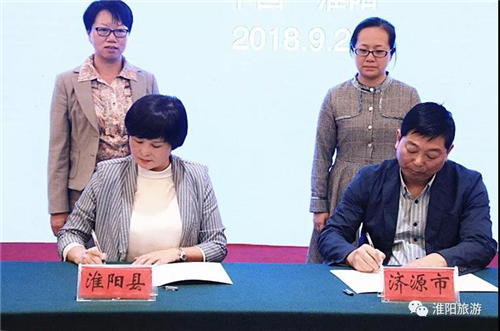濟源旅發(fā)委與淮陽旅游局簽訂《旅游戰(zhàn)略合作協(xié)議》,并交換兩地旅游扶貧文件,讓更多的貧困群眾在結(jié)對幫扶中受益。