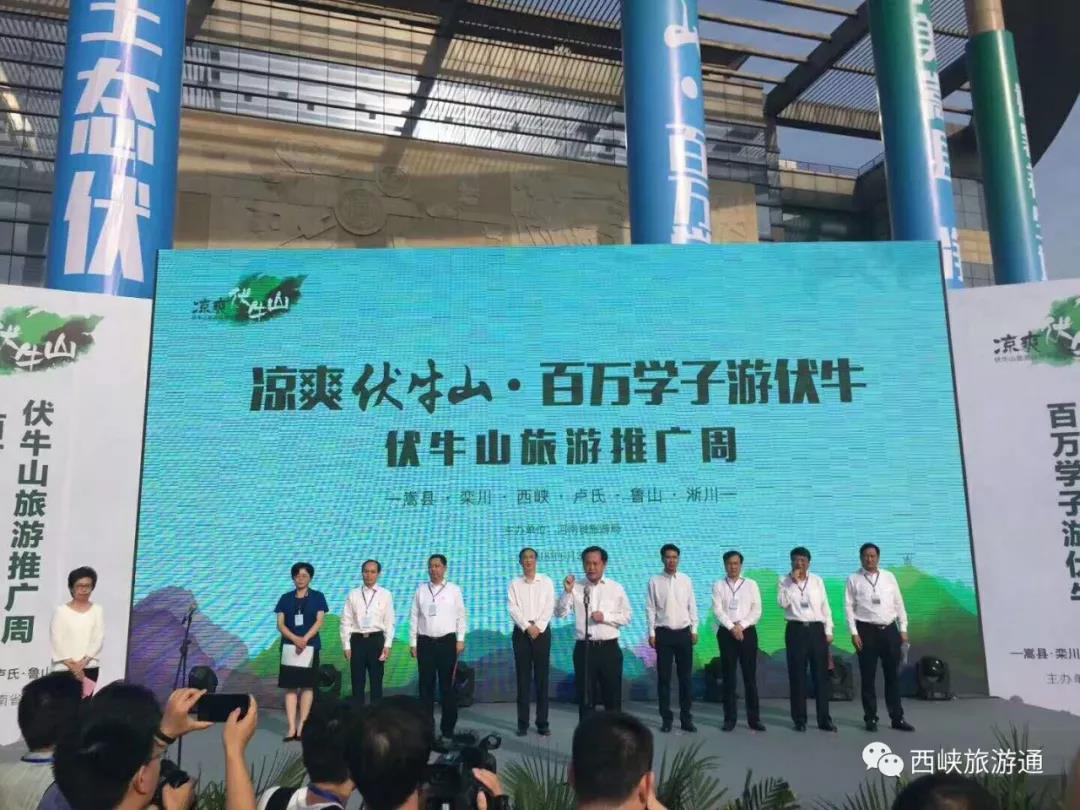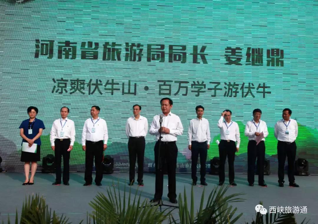 6月29日上午,“涼爽伏牛山-百萬學(xué)子游伏牛”活動在河南旅游服務(wù)中心啟動。省政府副秘書長萬旭同志,省旅游局局長姜繼鼎同志,省扶貧辦開發(fā)指導(dǎo)處處長梁增輝同志、嵩縣縣委書記徐新同志、欒川縣委書記董炳麓同志、西峽縣委書記孫起鵬同志、魯山縣縣長李會良同志、盧氏縣縣長張曉燕同志、淅川縣縣長楊紅忠同志以及鄭州、平頂山、三門峽、南陽、信陽旅游局的相關(guān)領(lǐng)導(dǎo)同志參加了此次活動。