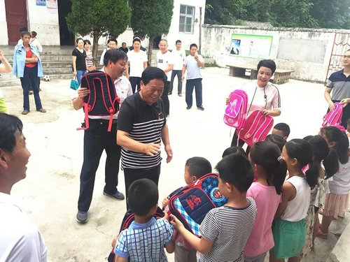 活動共進(jìn)行三項內(nèi)容。首先,對堂溝村小學(xué)學(xué)生進(jìn)行慰問。平頂山市旅游局領(lǐng)導(dǎo)為每名學(xué)生發(fā)放了書包、學(xué)習(xí)用具,并鼓勵孩子們好好學(xué)習(xí),不斷進(jìn)步。堂溝村小學(xué)目前在校生共十三名,學(xué)前班、一年級、二年級三個年級在一個班上課,學(xué)生大多為留守兒童,老師1名。在“七一”建黨節(jié)來臨之際,給孩子們帶來了黨的關(guān)懷,讓其在黨的雨露滋潤下茁壯成長。