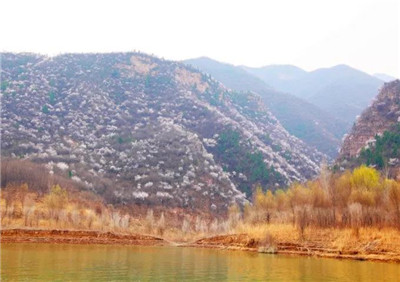 黃河晉豫大峽谷兩岸山勢雄偉壯麗,河面風(fēng)平浪靜,特殊的氣候條件,特別適宜山桃花生長,每年三月當(dāng)?shù)馗浇稚嫌裉m花盛開的時(shí)候,山桃花也就隨兩岸山勢由低而高競相綻放,花期長達(dá)近一個(gè)月。當(dāng)桃花盛開的時(shí)候,綿延幾十里的黃河兩岸,如白玉、如白羊、如白云、如白雪,遍布一坡一坡,猶如人間仙境,美若世外桃源,是游客游黃河賞桃花的絕佳勝地。