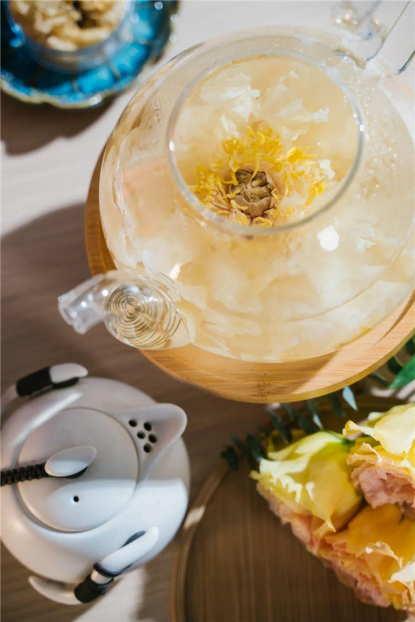 武皇牡丹全花茶·國色,該款產(chǎn)品由十朵天姿國色的白牡丹組成,沖泡后可在壺中緩緩綻放,茶湯清澈明亮,花香馥郁甘甜,大家可在品茗同時盡賞牡丹盛放的精彩瞬間。該款產(chǎn)品整體設(shè)計考究,十朵花的設(shè)計更寄托了十全十美的寓意和美好祝福。