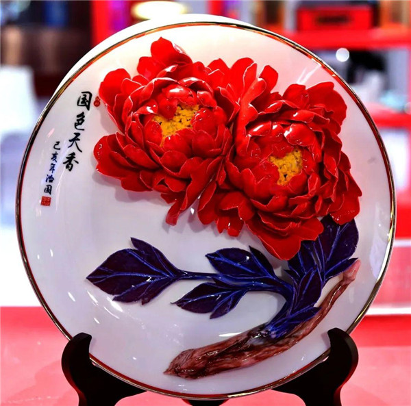 大唐李治國牡丹瓷·國色天香8寸盤,采用豫西地區(qū)富含多種礦物元素的高嶺土為制作材料,經(jīng)過原料研磨-拌漿-濾泥-塑型-成型-晾干-素?zé)┯裕詿榷嗟拦に囍谱髁鞒蹋罱K形成一件件美輪美奐的牡丹瓷藝術(shù)作品。