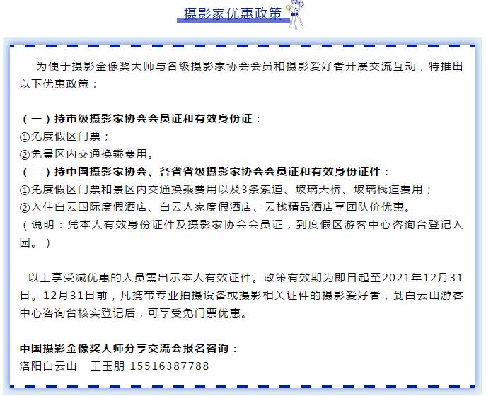 本次活動(dòng)邀請到劉魯豫、柳軍、于云天、李英杰、車剛、郭際、董冬、李馨曌、郭建設(shè)、鄭偉杰十位中國攝影金像獎(jiǎng)獲得者共聚白云山,走進(jìn)這里的自然山水,探訪這里的歷史人文,用鏡頭記錄“人間仙境”的美麗和神奇,5月10日、11日,于云天、董冬兩位攝影名家將在白云國際酒店與各地來白云山采風(fēng)影友開展面對面分享交流。