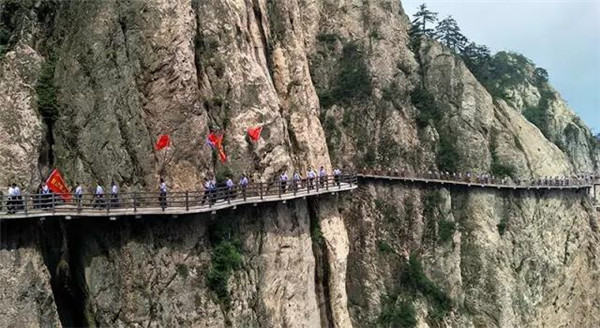 7月31日,八一建軍節(jié)前夕,河南老君山,在海拔2217米的馬鬃嶺最高峰,來自海軍某部的百余名退伍老兵面對軍旗,舉手宣誓!