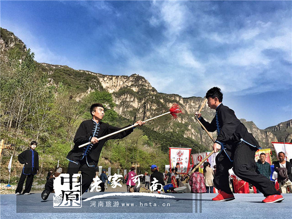 此次武術(shù)節(jié)的舉辦地萬仙山景區(qū)以郭亮掛壁公路聞名于世,這里風(fēng)景秀麗、層巒疊嶂,溝壑縱橫,飛瀑流泉,既有雄險(xiǎn)而蒼茫的石壁景觀,又有妙曼而秀雅的山鄉(xiāng)風(fēng)韻,集合太行山脈的雄、壯、奇、幽、峻為一體,是太行景色的代表之作。源遠(yuǎn)流長(zhǎng)的中國(guó)武術(shù)與雄渾曼妙的自然風(fēng)光相結(jié)合,帶給了數(shù)萬名海內(nèi)外游客一場(chǎng)獨(dú)具特色的視覺盛宴。