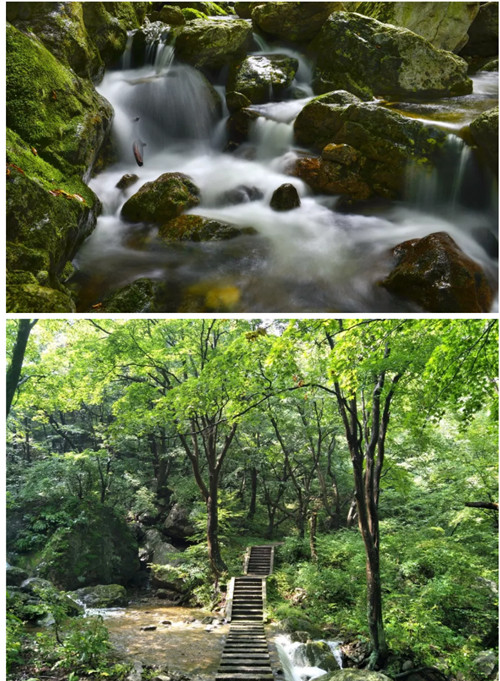 居高遠(yuǎn)眺,山峰蒼翠,透著清涼的碧意,群峰,云霧,還有蜿蜒的溪流,那畫面,簡直不要太美。
