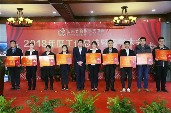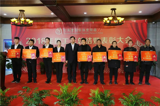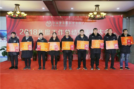 河南寶泉旅游度假區(qū)人力資源總監(jiān)孔祥民為優(yōu)秀員工頒獎(jiǎng)