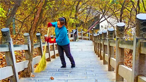 今年60歲,負(fù)責(zé)云臺(tái)山紅石峽景點(diǎn)黑龍洞附近衛(wèi)生清潔的環(huán)衛(wèi)工郭有順,是2000名云臺(tái)山人的典型代表。為了清掃落在懸崖間的垃圾,他每天都用一條繩索系在腰間,順著峭壁往下滑,瘦弱的身體懸在半空中,被游客稱(chēng)為“蜘蛛俠”。不僅是撿拾垃圾,郭有順還經(jīng)常幫助游客撿拾墜落崖下的物品,為游客排憂(yōu)解難。如今,懸崖上的“蜘蛛俠”已成為云臺(tái)山景區(qū)的一道風(fēng)景,郭有順也用自己的言行影響和感動(dòng)了游客,于2018年獲評(píng)“河南最美環(huán)保人物”,不久前還獲評(píng)第二屆“河南清潔達(dá)人”。