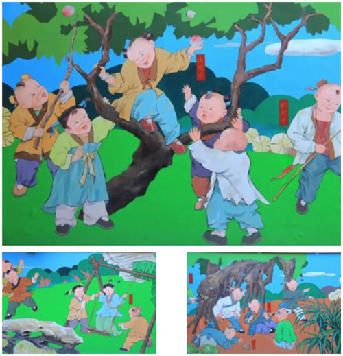 接下來咱們來說說清園里的壁畫藝術。細心的你們有沒有發(fā)現(xiàn),園子里墻壁上總有一些別致的圖案。這些壁畫都是由清明上河園宜谷畫院院長焦衛(wèi)東創(chuàng)作的,可愛的清明娃跑到了《清明上河圖》上,妙啊。