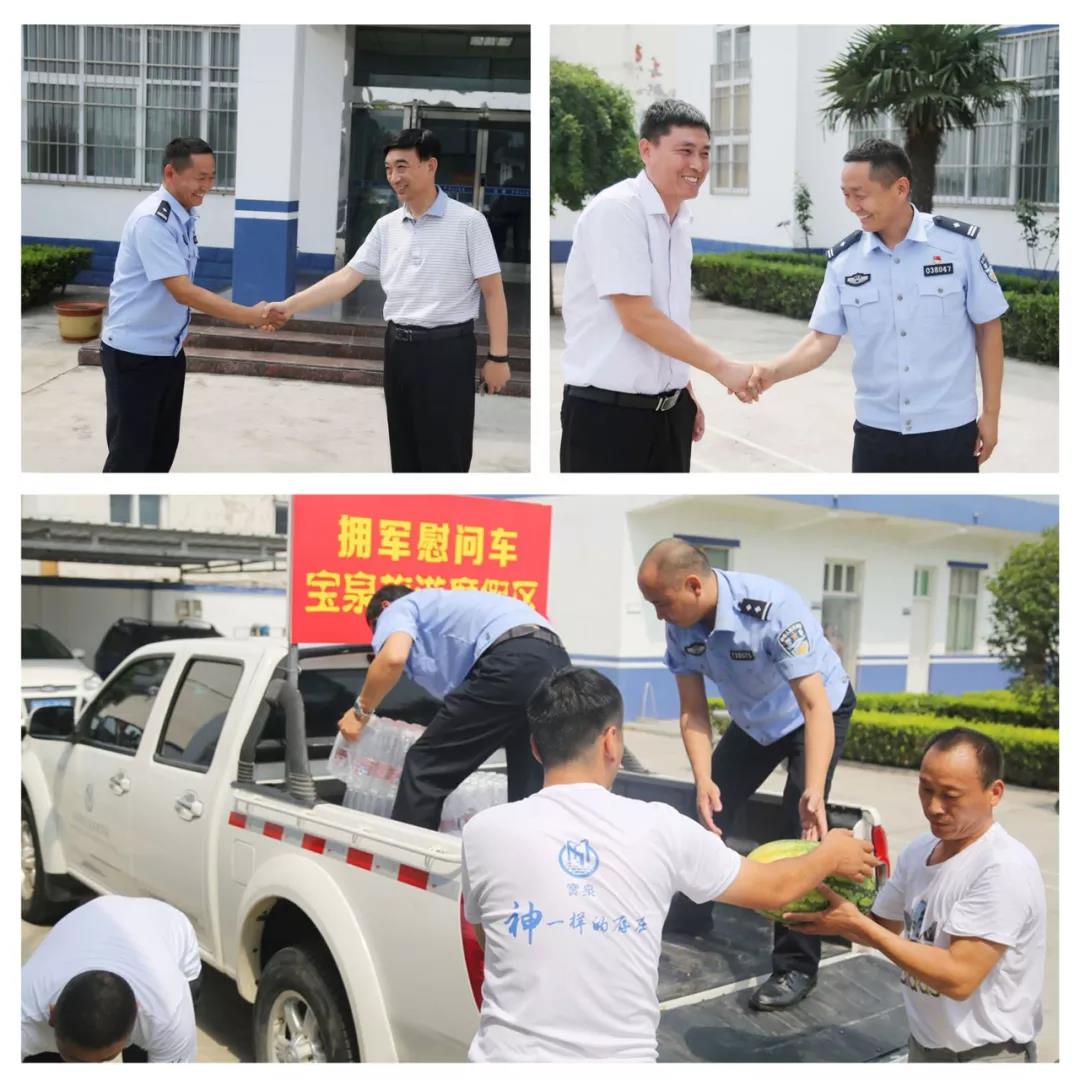 軍愛(ài)民,民擁軍,軍民魚水情誼深。7月31日,河南寶泉旅游度假區(qū)財(cái)務(wù)總監(jiān)余夢(mèng)一行到駐輝部隊(duì)、薄壁鎮(zhèn)派出所開(kāi)展“八一”走訪慰問(wèn)活動(dòng),向長(zhǎng)期以來(lái)關(guān)心和支持地方經(jīng)濟(jì)建設(shè)和維護(hù)社會(huì)穩(wěn)定做出奉獻(xiàn)的官兵送去節(jié)日問(wèn)候和祝福,并送上肉、礦泉水、西瓜、洗衣液等慰問(wèn)品。