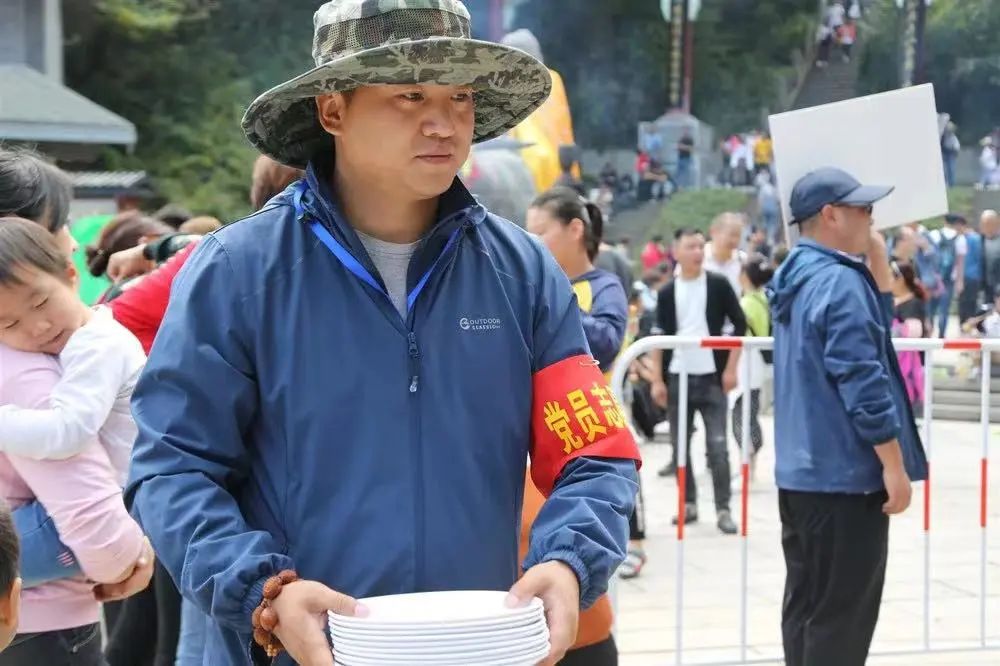 4、在老君山景區(qū),每逢節(jié)假日客流量大時(shí),總能看到佩戴黨員標(biāo)志的志愿者服務(wù)隊(duì)。