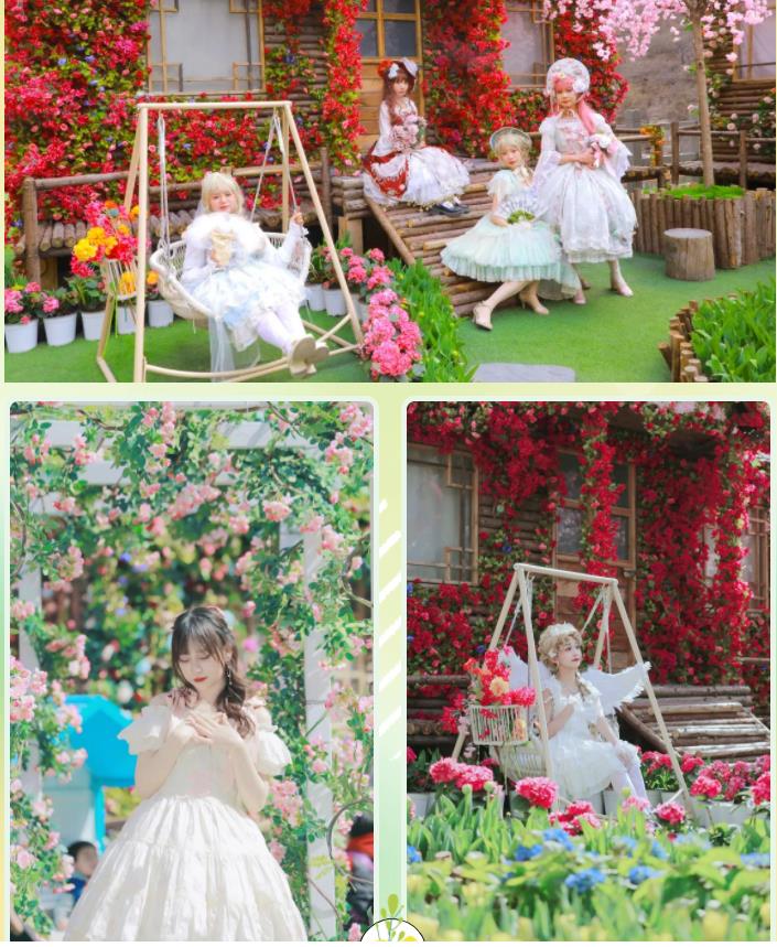 春日的美好氣息令人心曠神怡,都說(shuō)郁金香是春天最浪漫的文案,這里各種各樣的小場(chǎng)景布置太美了,布滿鮮花的花屋、玫瑰瀑布、吊椅等,花院的小路上鋪滿了青石板,穿上喜歡的小裙子簡(jiǎn)直不要太開心!