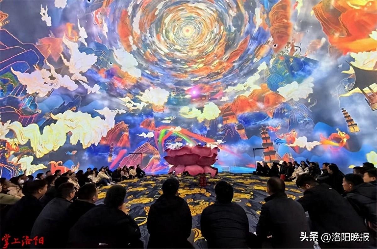 “置身伊闕兩岸山水間,看無數(shù)鯉魚逆流而上,聚在龍門下奮力跳躍;望龍門石窟最美“天花板”蓮花洞,與盧舍那大佛貼面而過……”近日,在位于洛陽龍門古街的“無上龍門”沉浸式體驗館,一場全息天幕秀令觀眾直呼“人在畫中游”。