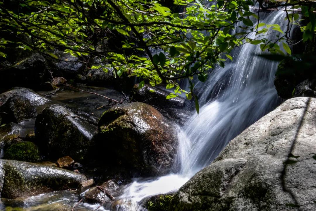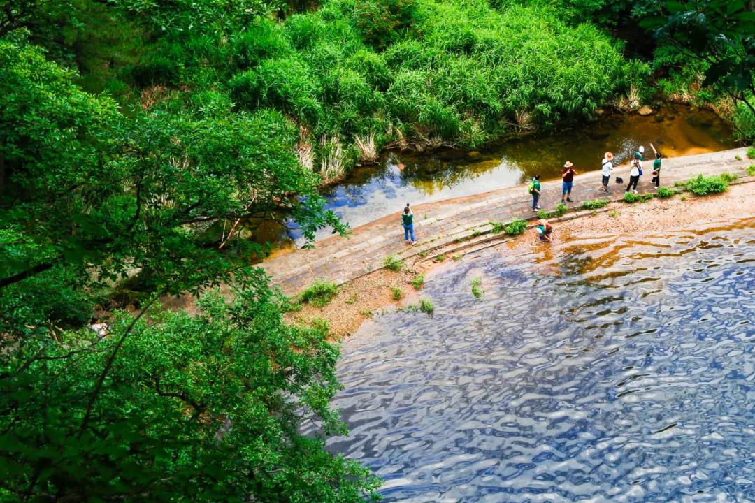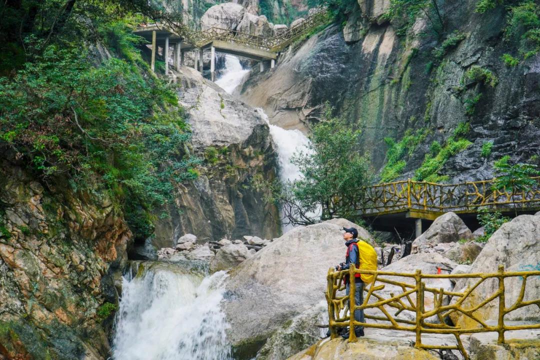 這里有山泉叮咚的靜謐,也有九龍瀑布的瑰麗。登海拔1900的九龍?zhí)鞓颍惺苌搅种畼。千尺崖的洞天棧道有愛情天梯之稱,不妨一起牽手游走一番。