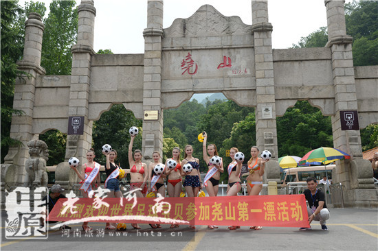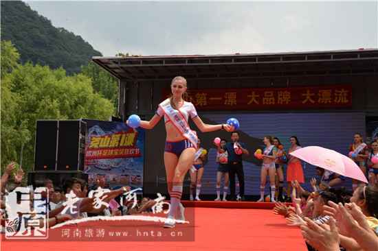 歐洲杯足球寶貝空降鄭州機場,參加堯山第一漂激情漂流!