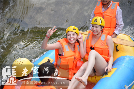 一路尖叫、一路歡笑,足球?qū)氊愒隗@險(xiǎn)刺激的堯山第一漂體驗(yàn)了異國的水上運(yùn)動(dòng),足球與漂流共舞,足球?qū)氊悅儻偪翊蚱鹆怂蹋俅握故玖怂齻儗?duì)這里的熱愛,清涼、冰爽的漂流和游客們歡樂的互動(dòng),讓她們不由擺出各種pose,并紛紛與游客合影留念。