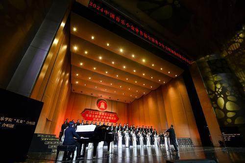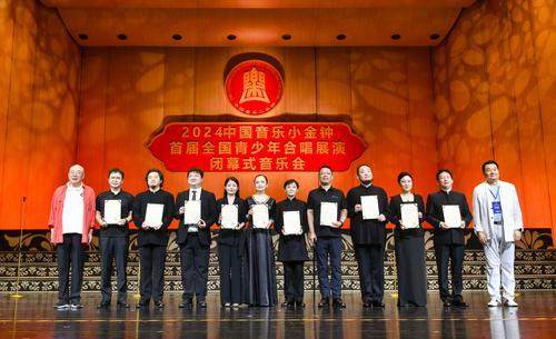 8月13日,2024中國音樂小金鐘首屆全國青少年合唱展演閉幕式音樂會在鄭州大劇院舉行。圖為優(yōu)秀合唱指揮頒獎儀式現(xiàn)場。徐宗福攝