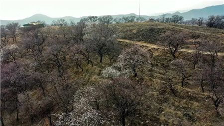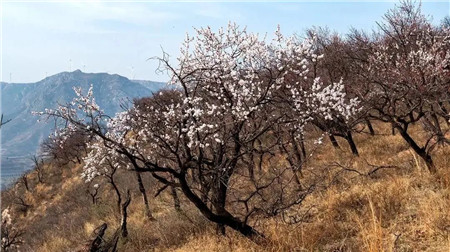 位于汝州市焦村鎮(zhèn)槐樹村后方的擂鼓臺山是安溝水庫東側(cè)的群山之一,頂部地勢平緩,土石摻雜,樹木叢生,尤以野生杏樹居多,每年初春時節(jié),杏花綻放,古寨掩映其間,真乃踏春賞花的好地方。