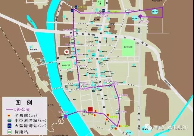 站點設(shè)置:簡村-黃師文化大院-孔溝路口-封店-五里橋轉(zhuǎn)盤-菌種廠-五里橋鎮(zhèn)政府-農(nóng)行五里橋支行-西峽一中-老十字街口-郵電局-老車站-白羽路口-農(nóng)商大世界-銘謙實業(yè)公司-火車站。