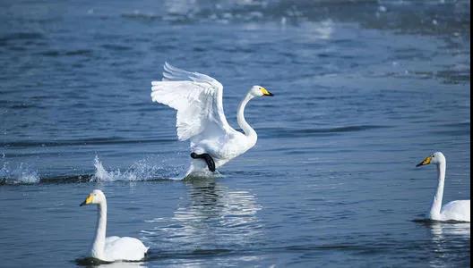 寒冬凜冽,成千上萬只天鵝此刻已從遙遠(yuǎn)的西伯利亞飛臨這里,上演著優(yōu)美的天鵝圓舞曲。黃昏晨曦、云霧雨雪、都淹沒在天鵝的美妙集結(jié)中。天鵝的美,美在靈動(dòng),美在每時(shí)每刻,連閉上眼,都沉浸在天鵝曼妙的叫聲中。