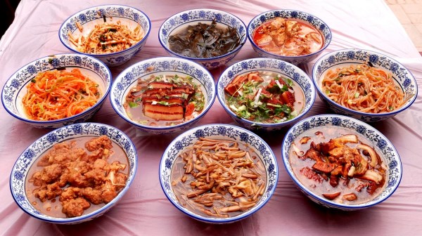 除此之外,還有十碗席,它是我們這里一種古老的、獨(dú)特的待客宴請(qǐng)的菜系,據(jù)說當(dāng)年慈禧老佛爺被八國聯(lián)軍打得往西安逃奔時(shí)路過陜州,吃了十碗席,贊不絕口,它就地取材,用豬肉、蘿卜、白菜、豆腐、粉條、豆芽、金針菇等制作而成,經(jīng)濟(jì)實(shí)惠,葷素搭配、湯菜兼有,大家圍坐一桌,既好吃又熱鬧,保證你吃完以后還想下一次!
