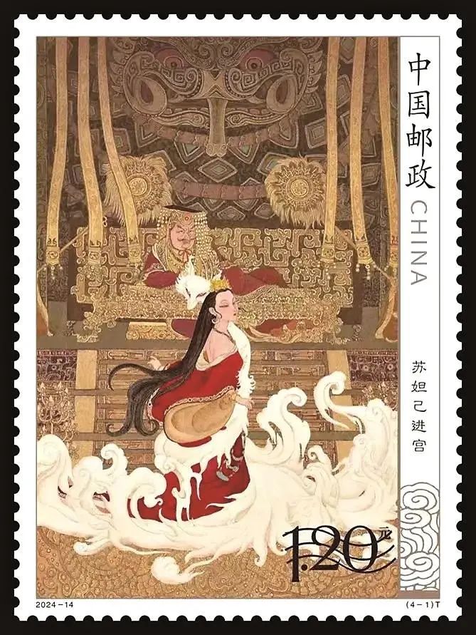 據(jù)悉,當(dāng)天首發(fā)的《封神演義(一)》特種郵票1套4枚、小型張1枚,全套面值11.1元。表現(xiàn)內(nèi)容分別為:(4-1)蘇妲己進(jìn)宮;(4-2)雷震子救父;(4-3)周文王訪賢;(4-4)武成王反商。小型張為哪吒鬧東海。