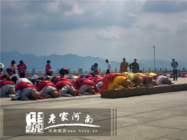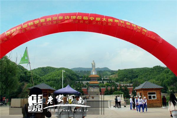 4月24日下午,德牛長老一行到達中原大佛景區(qū)參觀交流。當天,中原大佛景區(qū)布置一新,山門放置了彩虹門,制作了中韓文字的歡迎標語,佛泉寺僧團在中原大佛景區(qū)熱情地接待了參訪團一行。